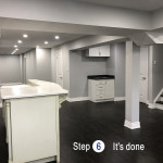 There are a lot of steps involved in finishing a basement. However, you don’t have to do them all at once. If your budget is tight, though doing them at the same time will make your basement more functional faster! These are the steps of finishing a basement: • Quote • Design • Getting permits and inspections • Setting a start date • Delivering materials to your home • Demolition (in some cases) • Framing • Electrical and plumbing rough-ins • Drywall and taping • Flooring • Tiling • Painting • Installing kitchen (if applicable) • Adding fixtures and accents • Final inspection