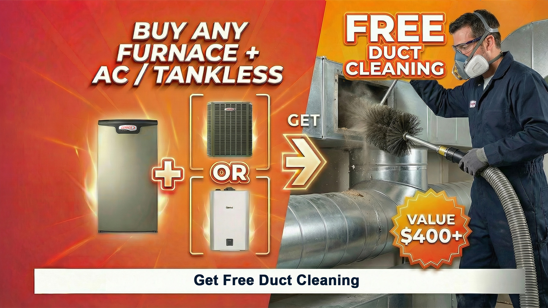 FREE $400 Duct Cleaning with Furnace + AC or Tankless Combo!