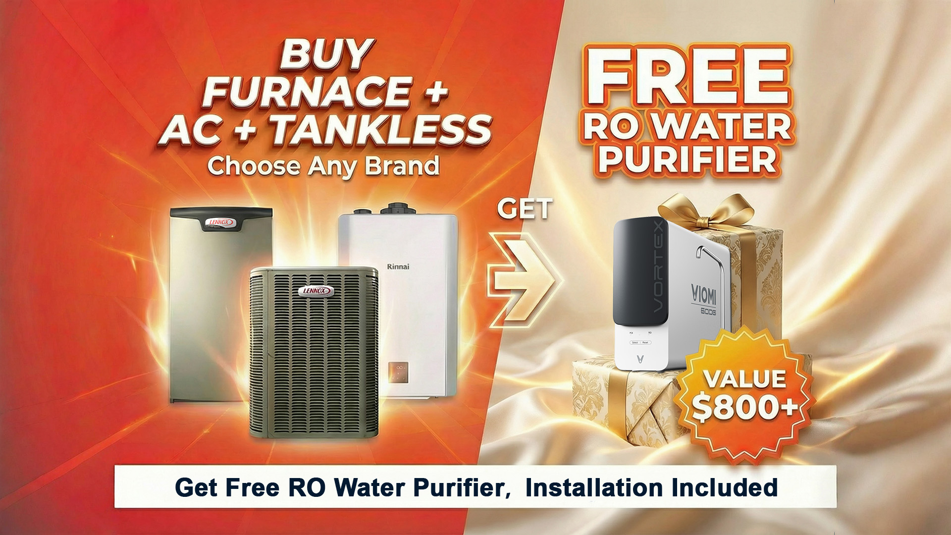 Get Furnace + AC + Tankless & Receive a FREE RO Water Purifier ($800+ Value)!
